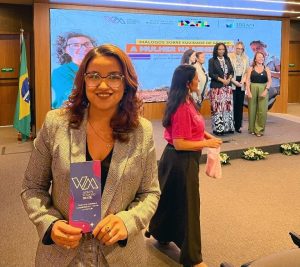 Iniciando o último bloco da tarde de debates, Paula Azevedo, advogada integrante do comitê jurídico da WIM Brasil, destacou a importância da permanência das mulheres nos espaços conquistados e o papel das novas gerações nesse processo. Em seguida, questionou a professora Adalene Moreira sobre como as universidades podem atrair mulheres para atuação no campo, além do meio acadêmico.